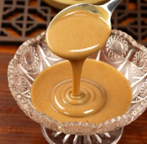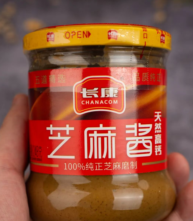 將長(zhǎng)康100%純芝麻醬倒入碗中,一邊加涼白開(kāi)或香料熬的水,一邊用筷子順著一個(gè)方向攪拌即可。